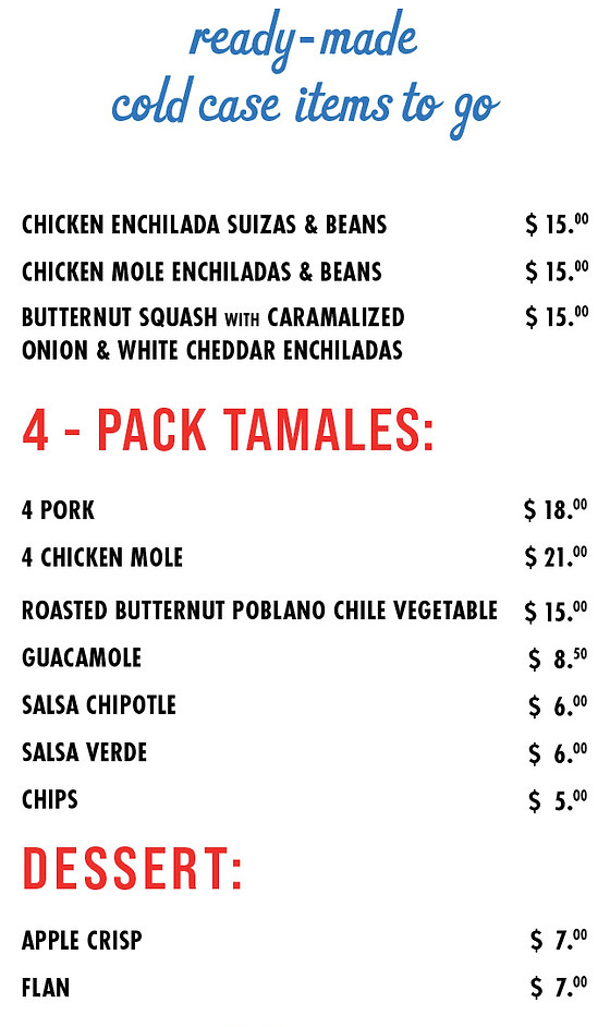 SOPAS Y ENSALADAS POSTRES SOMETHING SWEET BEVERAGES. À LA CARTE MENU CHICKEN AL PIBIL Adobo marinated chicken breast primavera rice fried beans CATCH OF THE DAY SOL Y LUNA Catch of the day steamed rice huitlacoche squash blossom sauce MAR DE CORTEZ SEA BASS Pan seared local sea bass grilled vegetables mango peach sauce TRICOLOR ENCHILADAS. View the online menu of El Molino Supermarket and other restaurants in Charleston South Carolina.